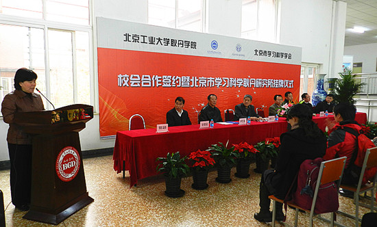 参加这次挂牌仪式的领导有:北京市科学技术协会副主席周立军,北京市社会科学界联合会机关党委书记周志勇,北京市学习科学学会高级顾问、原北京市教育科学研究院院长时龙,中小学管理杂志社社长柴纯青,北京市学习科学学会副理事长、兼秘书长李荐以及beat365英国官网院长林炎志,beat365英国官网常务副院长甘德安,beat365英国官网党总支副书记、工会主席郭颖。仪式由学院党总支副书记、工会主席郭颖主持。