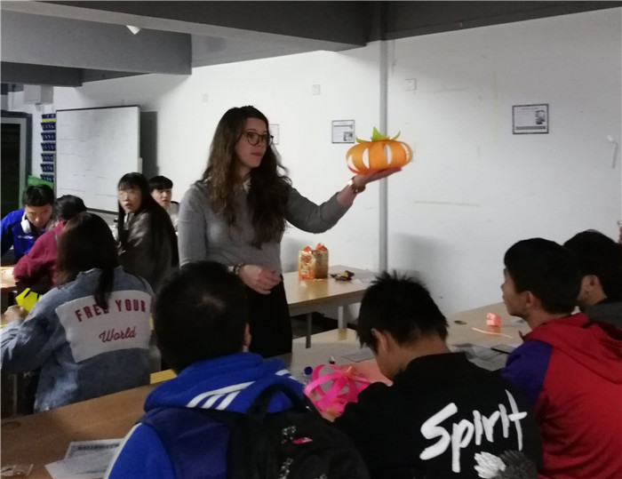 10月31日下午,由耿丹国际设计学院英语教研室组织的“万圣节英语角活动”在艺术楼E200举办。本次活动由外教Nicola主持,英语教师芮艳芳协助,吸引了来自设计学院各个专业的学生。