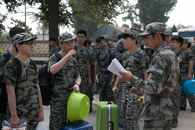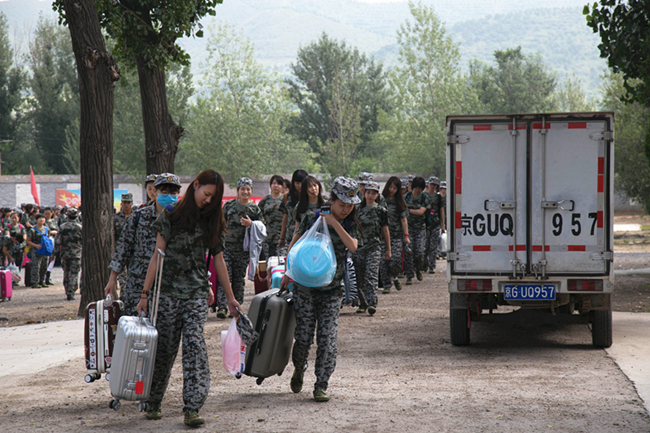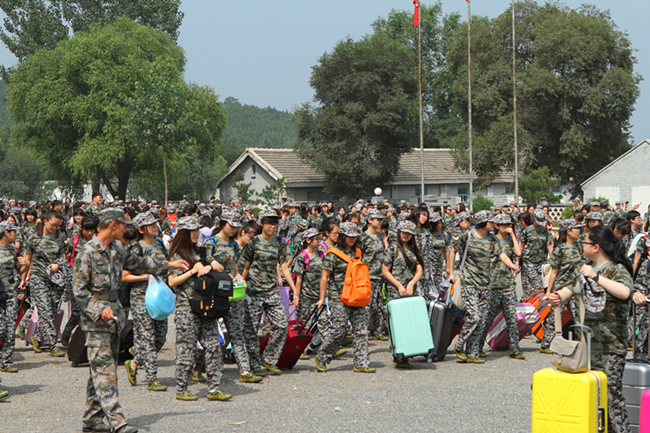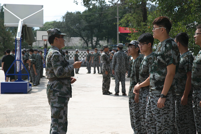 上午9时整,2015级新生在带队老师的组织下启程前往位于北京市延庆县的军训基地,经过近2个小时的车程到达基地。随后进行了清点人数,入住,组建营、连、排、班,集中动员、分组讨论等事项的安排。下午2时45分,着装整齐的2015级新生在军训教官的指引下列队完毕。3时整,在雄壮的国歌声中开营仪式正式开始。在开营式上,承训部队教官进行了队列和军体拳表演。整齐划一的队列变换、扎实雄浑的军体拳表演引来同学们赞叹和热烈掌声。开营仪式中,天气由阴转雨,但我院军训新生同学们始终精神饱满、队列整齐,展现出耿丹学子良好的精神风貌。仪式最后,党委副书记沈自友代表学院向承训部队授军训团团旗。