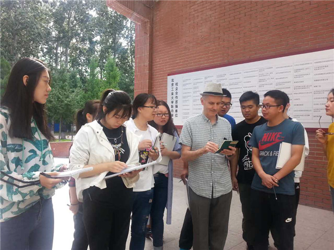 在英语集训的同时,2017级新生又迎来了他们本学期的第一位专业课外教――Ciaran CUFF,为他们讲授“Built Environment”这门课程。作为第一位到来的外教,Ciaran将专业课的知识讲解的风趣生动,并在课上加入的大量的案例以及现场考察,为的就是学生们能够更加容易的理解知识,同时鼓励他们多思考多提问。