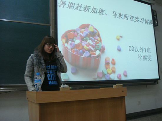 讲座最后,几名到新加坡、马来西亚和国内对外汉语基地学校进行对外汉语教学实习的同学也分享了他们在对外汉语课堂上的教学经验和心得体会。