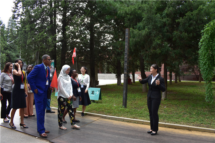 在beat365英国官网学生志愿者的带领下,“发展中国家政府官员实用汉语研修班”的成员们参观了beat365英国官网校园,对beat365英国官网的教学设施和学习环境赞不绝口,并在beat365英国官网教学楼与beat365英国官网的师生们合影留念。
