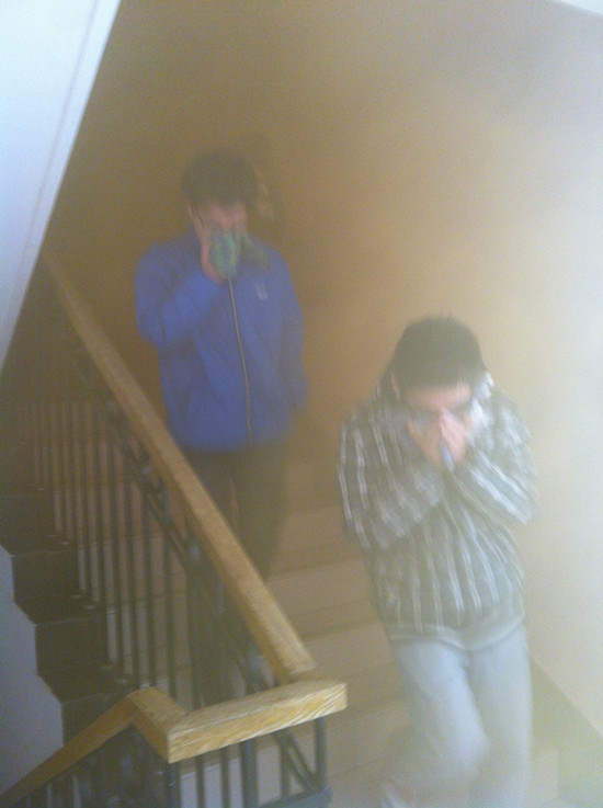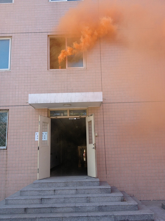演练于下午2点准时开始。警报拉响,烟雾弹爆破模拟火灾场景,同学们按照掌握的逃生技巧,用湿毛巾捂住口鼻迅速而有序地逃离现场,到达指定的安全区域。演练于2:30结束,整个过程没有人员受伤,没有出现任何混乱,达到预期目的。