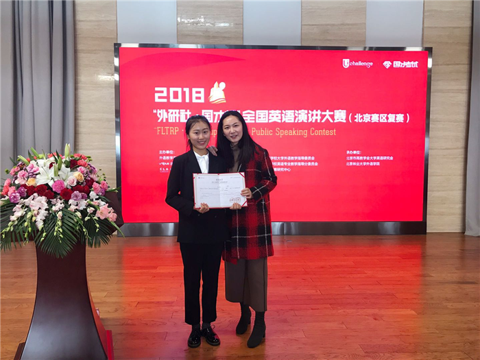 在紧张激烈的角逐后,谢天慧获得三等奖的好成绩,并无比喜悦地和指导自己的老师张蕾分享胜利的果实,其在赛前准备阶段不懈的努力得到了回报。