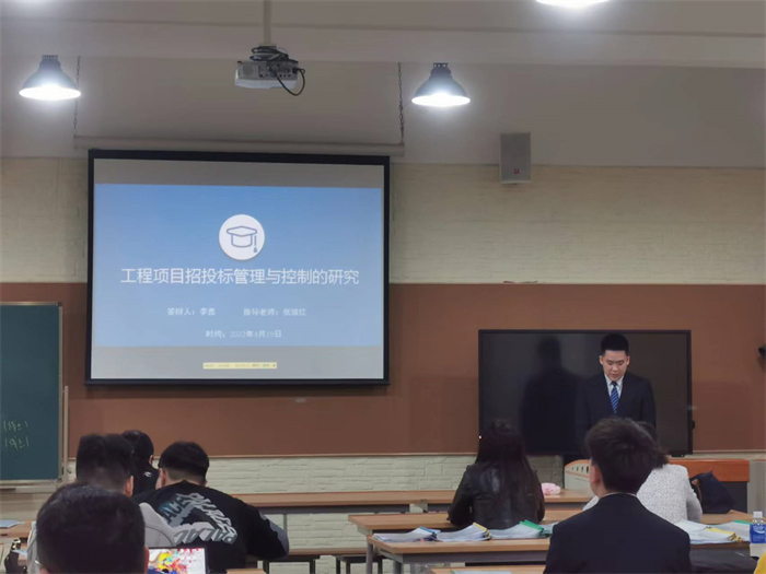 4月19日、4月20日、4月24日,工程管理专业2022届毕业论文答辩工作在建筑研究院105及线上分别展开。本次答辩对象为2018级工程管理专业全体同学。由于疫情原因,部分学生无法返校,其中26人参加线下答辩,9人参加线上答辩。工程理专业负责人张淑红老师及舒红旗等论文指导老师参加了此次论文答辩的指导工作。