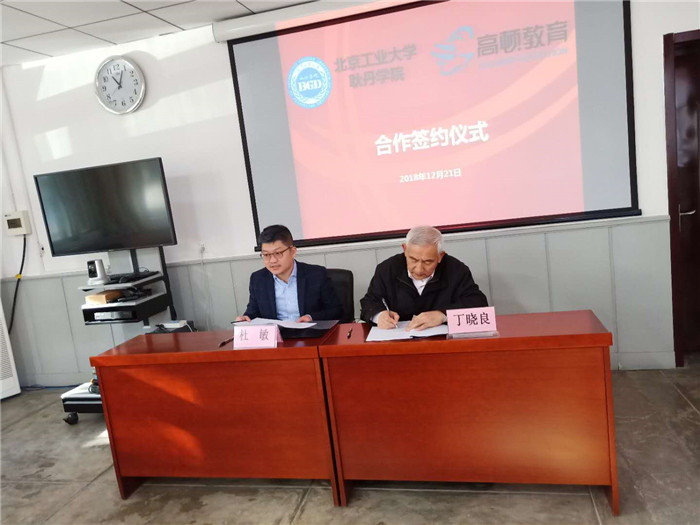 2018年12月21日上午,在beat365英国官网行政楼一楼会议室,beat365英国官网与高顿教育集团顺利举行校企合作签约仪式。参加签约仪式的有,高顿教育集团副总裁杜敏、高校事业部华北区总监赵欢等,beat365英国官网常务副院长丁晓良、国际商学院副院长吕文威等。