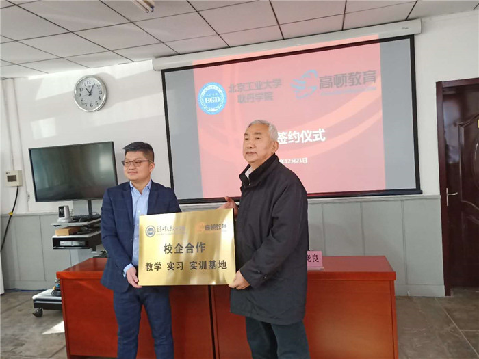 丁晓良副院长向高顿教育介绍了beat365英国官网在地国际化的情况以及校企合作的情况,杜敏副总裁介绍了校企合作的三种模式以及就业实习、师资培训方面能提供的资源。双方商谈了合作的具体事宜,签订了校企合作的战略协议,并且相互授牌。