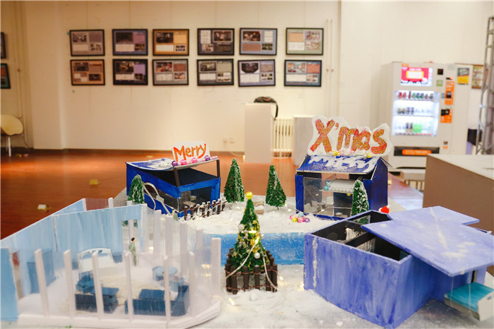 通过场地分析图、气泡图、思维导图、平面布局图、人群分析图等一系列图纸绘制,学生确定了各自的方案及设计重心。随后开始模型制作、SU效果图建模、展板制作及H5制作。