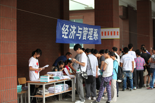 早晨七点,来自全国各地的新生及家长陆续来到学院,工作人员早已准备就绪,有条不紊地开始了迎新接待工作。学院领导和各系领导一早便亲临报到现场,对各报到点的工作进行指导,并不时解答新生和家长们的疑问。