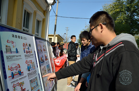 活动中,同学们张贴消防知识海报,布置宣传展板,学生干部现场讲解消防知识,帮助大家在活动中进一步了解到很多的消防常识。现场同学一致表示一定从自身做起,坚决杜绝消防安全隐患,提高消防安全意识。学院近千名学生在“珍爱生命从防火做起,杜绝火患从我做起”的条幅上签名,突显出同学们对本次活动的满腔热情。