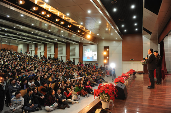 11月4日晚,应俞敏洪理事长邀请,《百家讲坛》主讲“两宋风云”的北京海淀区教师进修学校高级教师袁腾飞来我院举办题为“中国传统文化在当代的继承与应用”的讲座。俞敏洪理事长、学院领导、部分教师及千余名学生聆听讲座,本次讲座由俞敏洪理事长主持。