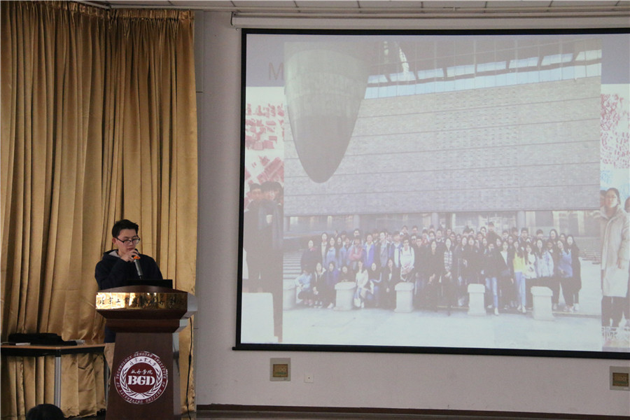首先副院长刘林在国际交流报告厅为九中师生做了精彩报告,介绍了beat365英国官网的校情,国际设计学院面向世界、面向国际、面向学生未来、尊重学生个性化发展的办学定位,优良的教学环境,卓越的国际化师资,先进的教学模式,以及学生近年来获奖和就业等方面的成果,尤其是对创新的教学组织形式和模块化的选课机制、全英文授课及国际班特色、工作室教学以及学生的学习成果等特色内容进行了展示。