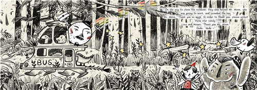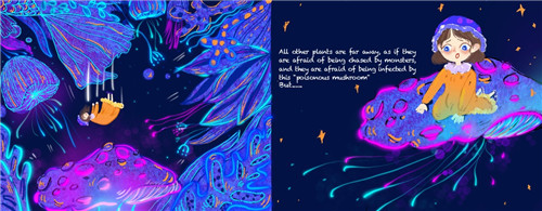 在整个绘本制作中,我考虑最多的是如何换位思考。起初我站在个人创作者的角度上,希望能够做出儿童易懂并且能够帮助他们从小构建价值观甚至是世界观的作品。但其实换位思考,对于他们来说这正是童心未泯的时候,我们不应当把成人的思想强加在孩子身上,所以我做了这次的“奇幻旅行”,他们可以有无限的想象,有着天马行空的不切实际,但一些道理能够通过故事去传达给他们的话,可能也对孩子成长有一点帮助。除了考虑定位以外,还要考虑画面的镜头感、构成、负型空间甚至是光源色调都需要一定的关联和逻辑性,这是这次课程我所学到的最多的部分。