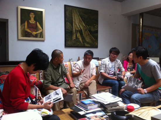四位教师与邓平祥、骆根兴两位艺术家进行了深入交流。