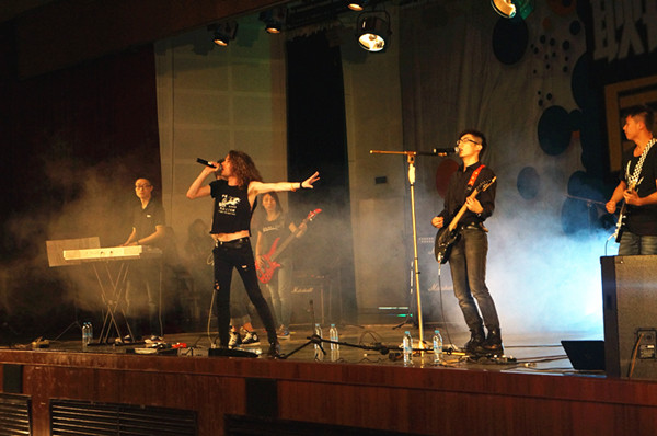 音乐节首先由一段精彩的视频拉开帷幕,之后新邮票乐队的登场迅速点燃了现场观众的激情。主唱热情的演唱,吉他手、鼓手的完美结合,几首歌下来已经征服了全场的观众。随后,龙凤晶晶、电声乐团轮番上阵,再一次掀起一股股音乐热潮。