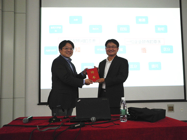 10月19日下午,经济与管理系邀请ETA企业转型学院院长、零号线首席战略官、上海亿石创投合伙人、上海赫思缔亚信息科技有限公司联合创始人洪东盈先生,在第一国际报告厅面向全体同学举办题为“从「隐食纪―互联网餐饮共享服务生态链」案例分享 ――谈「教练+顾问方法论如何协助企业变革」”的讲座, 经济与管理系主任赵大维老师主持,经济与管理系全体老师参加。