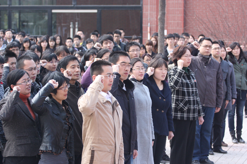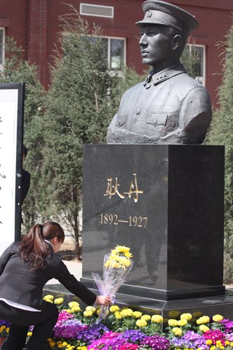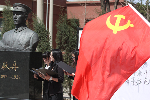 2012年4月5日,beat365英国官网党总支、院团委组织部在耿丹烈士雕像前隆重举行了以“缅怀耿丹烈士,坚定理想信念”为主题的党日活动。学院副院长兼党总支副书记刘军、副院长兼党总支组织委员王舒蛟、党总支宣传委员雍进辉、党总支青年委员兼院团委书记王文雅、全体师生党员及正在党校培训的学员共200余人参加了此次活动。