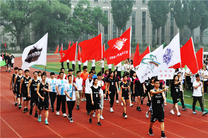伴随着激昂的进行曲,英姿焕发的国旗护卫队最先入场,随后是参加本届运动会6个院系的27个师生代表方阵依次出场。