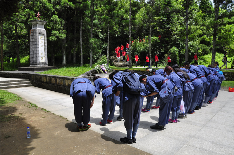 参观完红军造币厂,全体师生党员们来到井冈山小井曾志墓和小井红军无名烈士墓前缅怀革命先烈。在苍松翠柏的映衬之下,师生们所感受是红军战士坚定的意志和对共产党领导下的中国革命的信心。井冈山这片红色的土地上,在那如火如荼的井冈山斗争时期曾有48000多名烈士长眠在这里。除15744人留下姓名外,还有30000多名烈士连姓名都没留下。