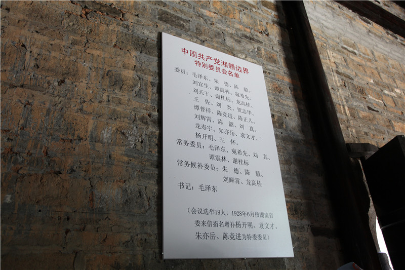 走进茅坪革命旧址群,我们看到的第一建筑是“谢氏慎公祠。”1928年5月,“中共湘赣边界第一次代表大会”就是在谢氏慎公祠召开的。会上选举产生湘赣边界第一届特委会。毛泽东、宛希先、刘真、谭震林、谢桂标五人为常委;朱德、陈毅、刘辉宵、龙高桂为候补常委;毛泽东任特委书记。