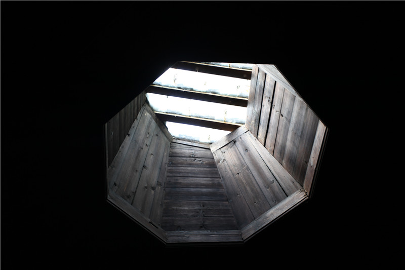 谢氏慎公祠后面那栋土砖结构的两层楼房就是八角楼,因为楼房里有一个八角形的天窗,所以当地群众习惯称这栋房子为八角楼。