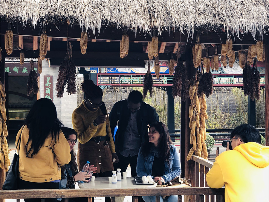 在牛栏山酒厂的老厂区,传统酿造工艺和理念让外教和同学们都赞叹不已。这里保留和恢复了酒厂前身福顺成烧锅和酒坊的样貌,让大家看到了最原始的发酵原料和仍在运作的手工生产车间,如同置身于百年前的老酒坊一般,通过讲解员对传统酿制工艺的介绍,从原料采集到发酵储存,使在场师生更能明白精益求精的涵义,以及酒厂秉承的酿酒理念。