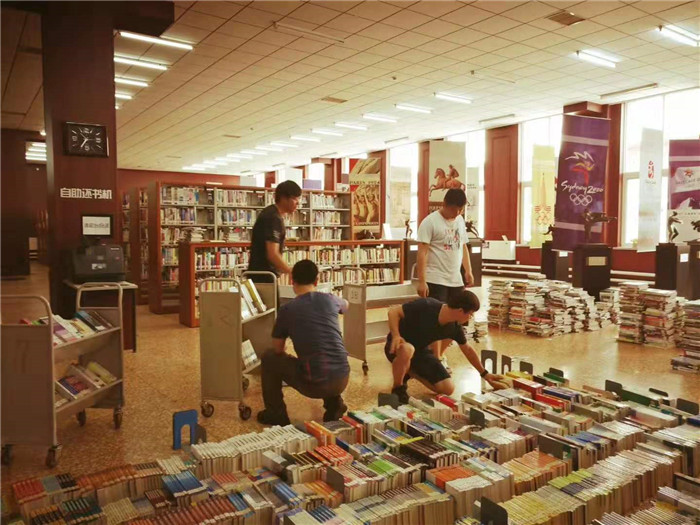 近日,体育部教师本着“奉献、友爱、互助、进步”的志愿服务精神,无私帮助图书馆高效率、高质量完成本学年的业务格局调整工作。本学年图书馆需要调整的书刊数量较大,工作任务很重,调整空间包括综合楼七层开放空间、地下室艺术共建馆、中文过刊馆及图书馆大厅等,需要搬运、上架的书刊4万余册。