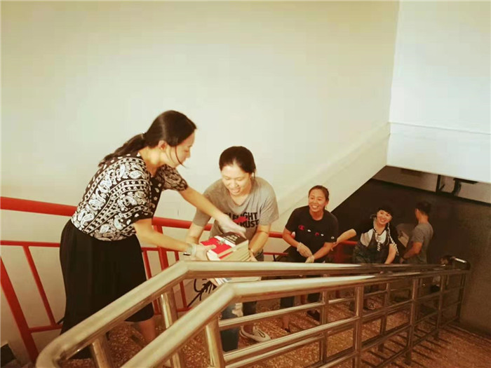 7月8日体育部老师们首次到馆支援,完成了综合楼七层“开放阅读空间”和地下“艺术共建馆”调整工作;7月11日,体育部再次相援,完成了“中文过刊馆”近十年来艺术类合订期刊调整工作;7月16日体育部教师又一次全体动员,帮助图书馆完成了大厅“耿丹开放书房”图书搬迁工作。体育部教师这种帮助他人、快乐自己“行善立德”的行为,为我们树立了学习的榜样。