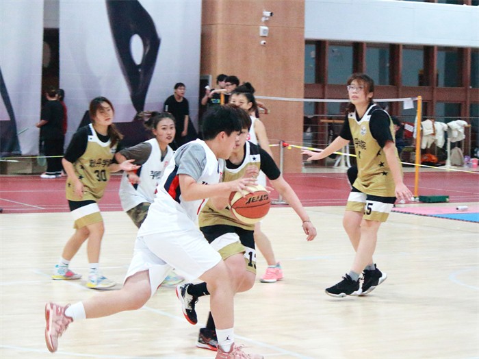 第二场比赛由国际商学院女篮对战工学院女篮。比赛中,商学院女篮展现出较强的整体实力,取得了比赛的胜利。工学院女篮面对场上的被动局面,始终顽强拼搏,充分展现了队伍良好的精神风貌。