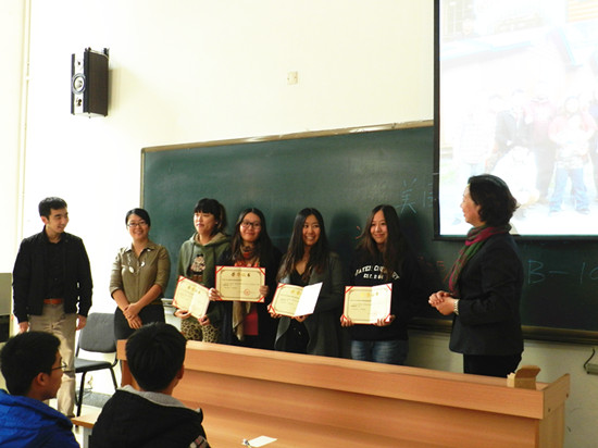 会上,副院长刘军首先发言,发言中将赴美带薪实习定为美国社会生存考验训练,并深入浅出的解析中美文化差异以及项目本身,并对随之学生可能产生的心理落差做出理性的分析和建议。随后,刘军副院长与优势办公室闫昕一同为2013年赴美带薪实习优秀学员颁发了奖金和奖状。在优秀学员代表张艺分享了实习感受后,优势办公室的负责老师针对项目的各个环节为在场的同学做出了详细的讲解。