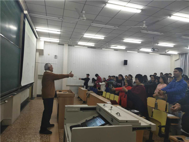 常务副院长丁晓良首先从耿丹学生的特点、何谓初心、怎样树立初心、为什么要和压力做朋友等内容与同学们进行分享,一方面让同学们进一步的去认识和认清自己,知道自己该做什么,如何树立目标;另一方面让同学们学会处理问题,化解压力,与压力做朋友。他特有的幽默风格带动了整个活动现场的氛围,最后还带领全场师生做了解压小活动,进一步告诉大家如何进行自我鼓励,做最好的自己。