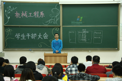 4月24日晚上7点,机械工程系在CJ02教室召开全系学生干部晨练动员大会。系主任许树勤教授、党支部书记齐建伟老师、全体辅导员、团学干部、班级干部等师生参加会议。会议由机械工程系学生会主席陈杉同学主持。