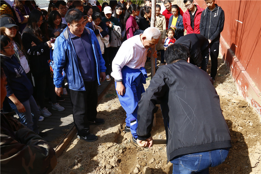 首先由孙磊副书记发表了动员讲话,随后在后勤部门演示了正确植树的方式,然后党员们按照预先的分组进行植树。在植树现场,党员们意气风发,热情高涨, 挥锹铲土、扶树填土、培土浇水,积极发扬不怕苦不怕累的精神,三人一组,相互配合,分工有序,整个植树现场洋溢着一种团结协作、奋发向上的融洽氛围,随后大家将写有自己名字的纪念牌挂在自己所植的树上,作为永久纪念。