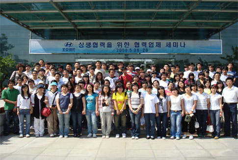 通过参观,现代汽车的企业文化和认真工作态度使同学们受益颇多。也让同学们进一步加深了对现代化的生产型企业的认识,接受了先进企业文化的熏陶。