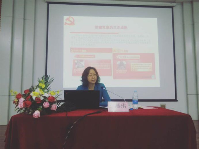 开班式后,王燕琪书记主讲了题为“学习党章、遵守党章,做坚定的马克思主义者”的专题讲座。讲座分为三部分,一是学习千年伟人马克思的思想理论,马克思主义不仅深刻改变了世界,也深刻改变了中国,中国共产党是用马克思主义武装起来的政党,马克思主义是中国共产党人理想信念的灵魂。二是党章发展的三次成熟。通过梳理党的历史脉络,详细讲授了中共一大到七大、新中国成立到十二大及从十八大开始的三次成熟阶段,阐述了党的成长及中国特色社会主义走向世界的成熟历程。三是十九大对党章的新修改。从党章修改内容出发,细致解读了马克思主义中国化的最新成果及十八大以来党中央提出的治国理政新理念、新思想、新战略,明确了朝气蓬勃、坚强有力、始终保持同人民群众的血肉联系的建设目标。最后,王燕琪书记总结强调,希望同学们做一个有理想、有本事、有担当的新时代青年,并引用习总书记说的一段话:“青年兴则国家兴,青年强则国家强。青年一代有理想、有本领、有担当,国家就有前途,民族就有希望。中国梦是历史的、现实的,也是未来的;是我们这一代的,更是青年一代的。中华民族伟大复兴的中国梦终将在一代代青年的接力奋斗中变为现实。”