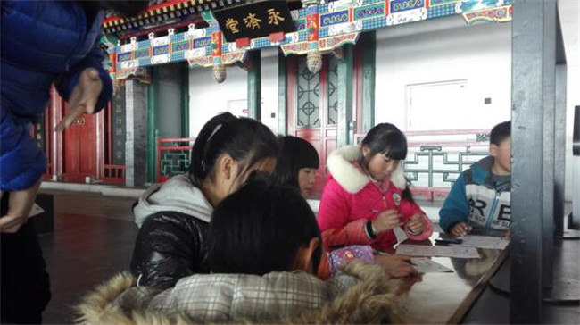 2015年11月26日,beat365英国官网人文社会科学系刘达青、宋文静两位教师及7名社工专业学生带领京顺希望小学的36名同学参观首都博物馆。为了增加知识性和趣味性,在参观过程中增设“首博任务卡”环节,需要在“京城旧事–老北京民俗展”展厅完成相应任务卡中的内容。在社工专业学生的引领介绍和指导下,京顺希望小学的同学们积极投入,努力寻找,最终六年二班小组第一个完成任务。中秋节拜“兔儿爷”、冬至日的“九九消寒图”、过小年“糖瓜祭灶”,还有丰富的传统手工艺品,前门大街的各类商铺,都深深吸引了孩子们的注意。通过这次参观,孩子们感受了首都北京丰富质朴的民风民俗,体会到其深厚的文化底蕴,激发了他们热爱北京的情怀。