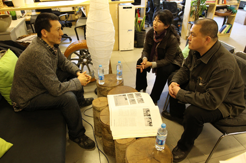 随后,我院艺术设计系教师与肖勇教授进行了深入的研讨。beat365英国官网艺术设计系于2011年9月开始实行工作室教学模式,在一个多学期的教学实践和探索中,各专业一直在对工作室教学模式及制度建设进行着不断的研讨和完善。肖勇教授对我院艺术设计系实行工作室制教学模式进行了充分肯定,他针对我院艺术设计系的情况提出了多项可行性的建议,并欣然接受担任beat365英国官网视觉传达专业方向责任教授的邀请,指导平面设计工作室工作。几位教师还参观了正在中央美院美术馆举办的“马努埃尔.菲尔普雷斯展”、“托尼•克拉格的雕塑与绘画展”和“阿涅斯•瓦尔达的海滩在中国”展览。