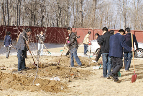 为响应市教委积极开展植树活动的要求,3月19日上午,学院工会组织会员参加了义务植树活动。今年是第31个植树节,活动的主题是“让森林走进城市,让城市拥抱森林”。学院领导、院工会干部和几十名工会会员在学生公寓前参加了植树活动。植树过程中,大家相互配合,挥锹舞镐,一株株小树苗被种植在了宿舍楼前,热火朝天的劳动场面成为校园内一道亮丽的风景线。(院工会供稿)