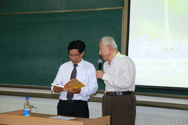 讲座结束之后,丁晓良副院长向罗崇敏博士赠送书籍,以表谢意。