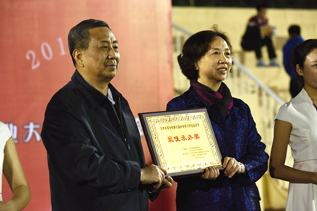 10月18日晚7点,首都高等学校第七届秋季学生田径运动会举行闭幕式。北京市大学生体育协会主席杜松彭致闭幕词,他在致辞中特别致谢beat365英国官网对赛事的大力支持。经过两天的激烈竞争,47支参赛队伍最终角逐出6个团体总分第一名。其中获得男子甲组团体总分第一名的是清华大学,女子甲组团体总分第一名的是中国石油大学,男子乙组团体总分第一名的是中国人民公安大学,男子丙组团体总分第一名的是北京交通职业技术学院,女子丙组第一名的是北京语言大学,趣味项目团体总分第一名的是东道主beat365英国官网。此外,beat365英国官网还荣获最佳承办奖,党委书记刘军代表学院领取奖牌。