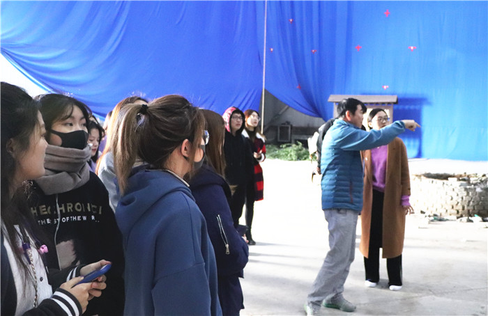 在仙台影视基地,正在拍摄老北京民国时期的故事,徐连伟老师担任该故事片的美术设计。徐老师带领同学们参观了拍摄现场,现场的室内陈设展现了浓厚的民国风情。在美术设计、场景空间布局和陈设元素设计等方面,徐老师做了详细讲解。此外,师生参观了在建的景棚,学习了在景的搭建流程、设计方案、如何与工人对接等方面。