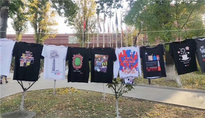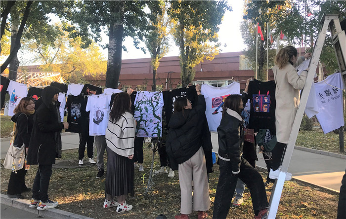 本展览展示了41名同学的精选作品,主题包括beat365英国官网学校建筑、标识、节日与社团活动等。同学们运用多种设计方式,对beat365英国官网进行设计展示。展示设计的内容为长、短袖T恤、卫衣等服饰。学生将作品定价出售,经过老师与同学们的认真挑选,大部分学生的作品成功售出。本次展览活动及展览作品获得学校老师与学生们的肯定。