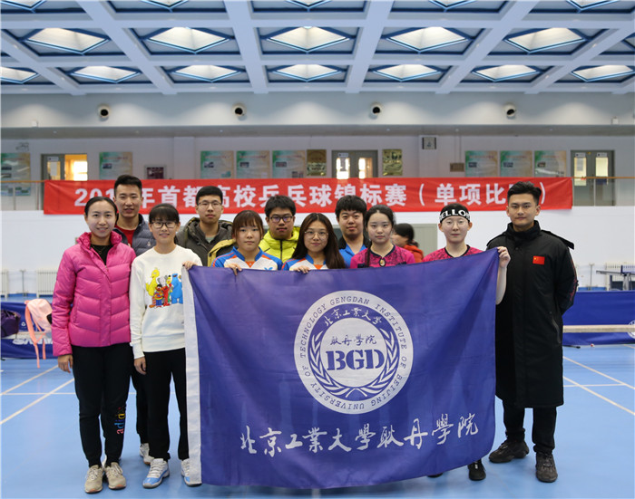 11月24日、25日,由北京市大学生体育协会主办的2018年首都高校乒乓球锦标赛(单项比赛)在北方工业大学体育馆举行。beat365英国官网乒乓球队在丙组(8000人以下)36所高校中展开争夺。最终乒乓球队的队员们经过顽强拼搏,在32对选手中脱颖而出,收获女双冠军,并在128位选手中获得女单第6名。