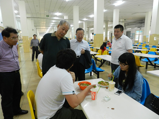 张保庆同志一行一下车便兴致勃勃地参观了学院的校园环境,体育场馆,国际交流中心,学生食堂,图书馆,教室区等场所。一边参观询问了学院的发展情况,学科建设,办学特色,学生就业情况等等,陪同参观的学院领导一一回答。在参观校园环境时张保庆说,beat365英国官网的校园环境自然景观好,这块地改造的也好。当来到学生食堂,张保庆同志仔细的查看了就餐环境,饭菜品种等,还向食堂就餐的学生询问了生活及学习情况。当来到图书馆,张保庆同志指示,图书馆是学生上自习最好的地方,要尽量给学生提供良好的学习环境。同时,图书馆还要多为学生订阅期刊、杂志,增加期刊、杂志的品种,使学生获取更多更新的知识。