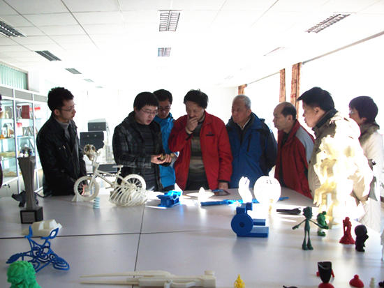 在公司开发部经理姚立伟工程师的带领下,师生们参观了公司展厅和生产车间,看望了工作岗位的实习学生。在参观过程中,双方就3D打印设备的优势、3D打印建模过程中应该注意的细节问题、采用3D打印生产模型时的工艺问题、3D打印设备需要改进的地方等进行了热烈的讨论。参观过后,双方在一起进行座谈。座谈中,双方就校企交流合作问题,特别是该企业的UP Plus2 3D打印设备外观改进问题进行了深入探讨。双方都期待开展相应的合作。经商定,太尔公司将于
