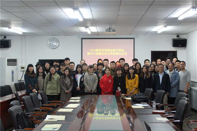 11月3日晚,2016级学友导师经验分享会暨2017级新生学友导师聘任仪式在行政楼一楼会议室召开,副院长刘林、各系学工负责人、辅导员参加了本次分享会。