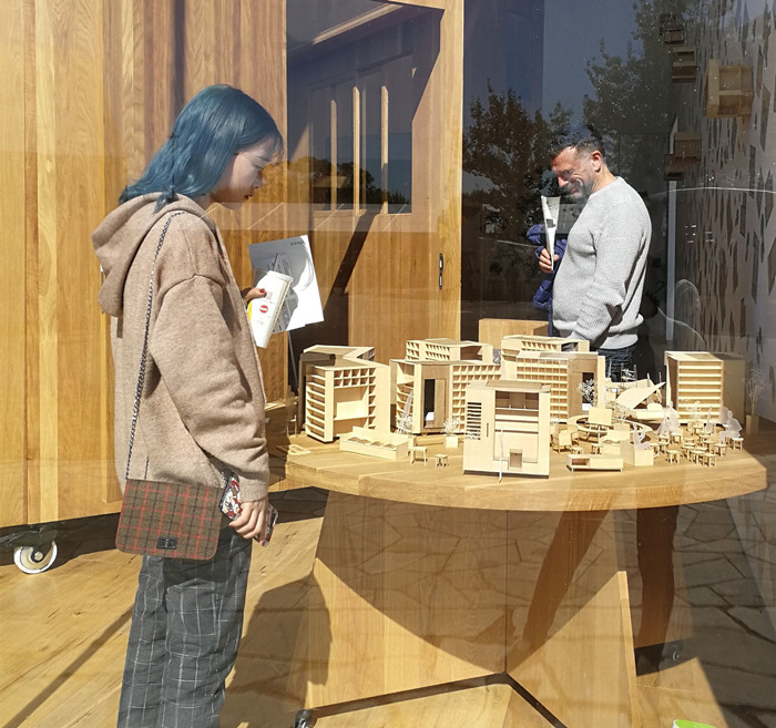 Thomas教授与陈琳老师在黄金比例、结构、空间营造上向学生进行了示范与指导。同学们现场体验到空间尺度、设计形式、设计与人之间的关系。