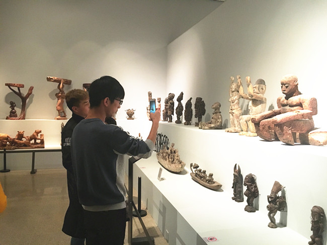 同学们先参观了古代中国陈列馆,它以王朝更替为主要脉络,分为远古时期、夏商西周时期、春秋战国时期、秦汉时期、三国两晋南北朝时期、隋唐五代时期、辽宋夏金元时期和明清时期八个部分,以古代珍贵文物为主要见证,较为全面地展示了古代中国不同历史时期在政治、经济、文化、社会生活以及中外交流等方面的发展状况。之后,同学们陆续参观了中国古代佛造像艺术展、中国明清家具珍品展、中国古代瓷器艺术展、中国古代玉器艺术等传统艺术展,调研中国古代经典艺术作品,体会中国传统艺术之美,并进行现场拍照和临摹。