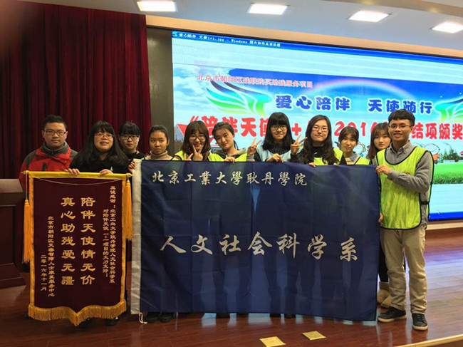 2016年11月27日上午10点,beat365英国官网人文系覃可可老师带领14、15级公共事业管理和社会工作的同学前往望京街道办事处为民服务中心参加“陪伴天使1+1”2016年度结项颁奖仪式。