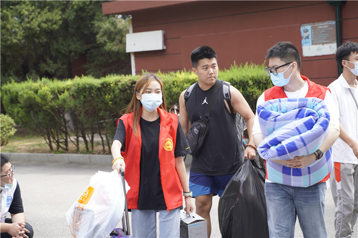 随着新生们陆续到来,报到现场也热闹了起来。核酸检测阴性证明、测量体温、行李物品消杀,一系列报到流程有条不紊的进行。新生同学们走进他们期待已久的大学校园,虽然大家都戴着口罩,也难掩内心的新奇和喜悦。